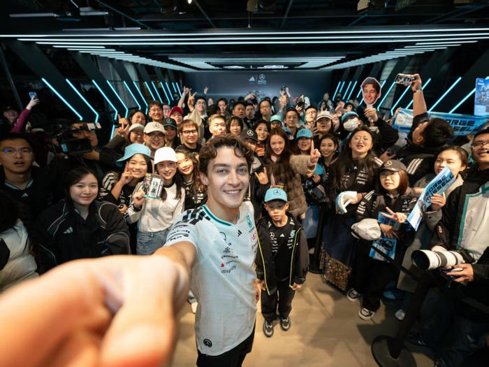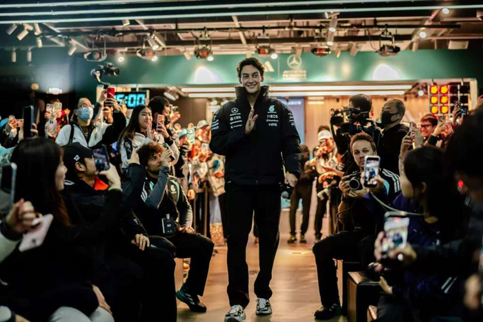 众所周知,拉塞尔对于中国和中国粉丝一直抱有热情,过去几年每一次来到上海站,他都会带来个人定制的头盔,头盔上会融入一些中国元素,此番与中国粉丝在线下见面,拉塞尔同样接地气,在主持人的引导下,开场就说出了“侬好,上海”,一时间引发粉丝热烈回应。